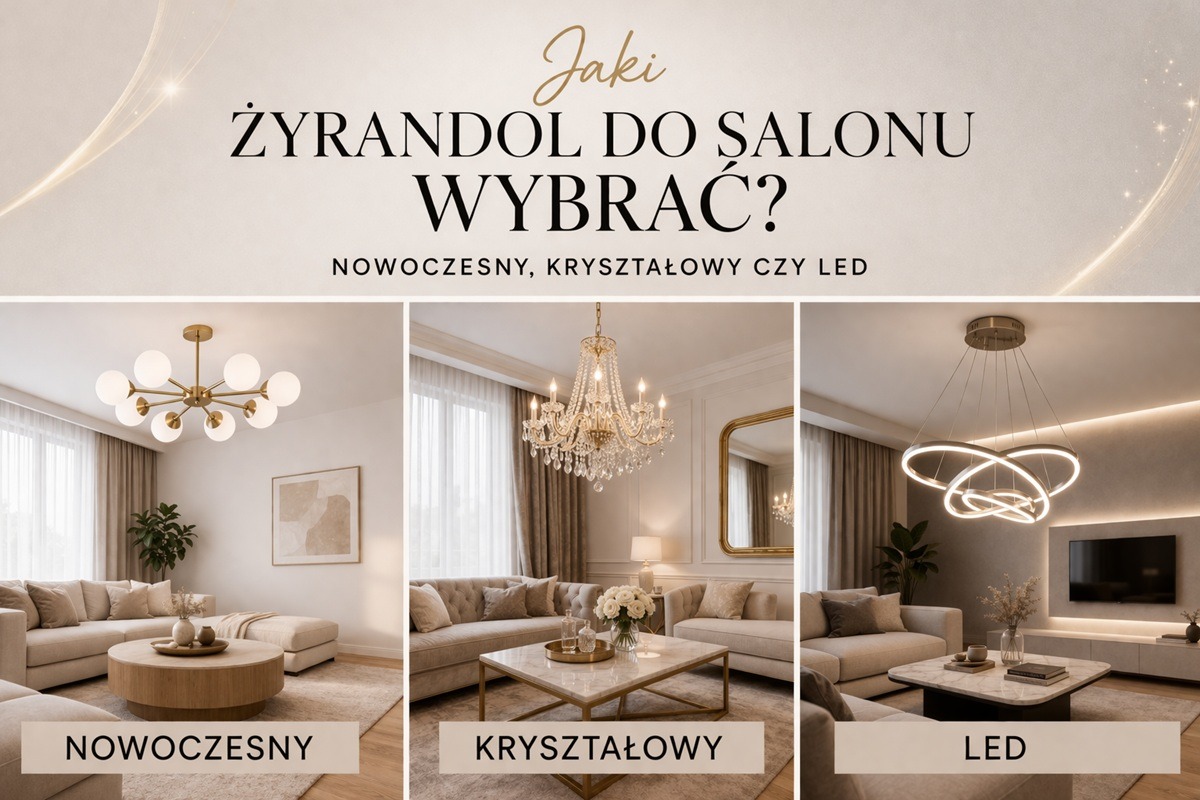 W tym poradniku wyjaśniamy, jaki żyrandol wybrać do salonu, czym różni się żyrandol kryształowy od nowoczesnej lampy LED oraz jak dobrać model do wielkości pomieszczenia.