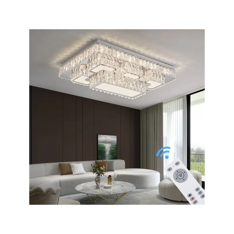 Lampa Led kryształowa sterowana pilotem i aplikacją plafon 75cm x 50cm