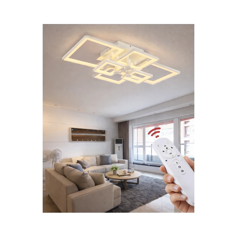 Lampa sufitowa LED MARS 77x53 cm z pilotem to nowoczesny plafon, który łączy funkcjonalność i prosty, elegancki design. Dzięki dużej powierzchni świecenia doskonale sprawdzi się jako główne oświetlenie w salonie, sypialni lub biurze.